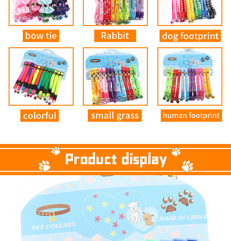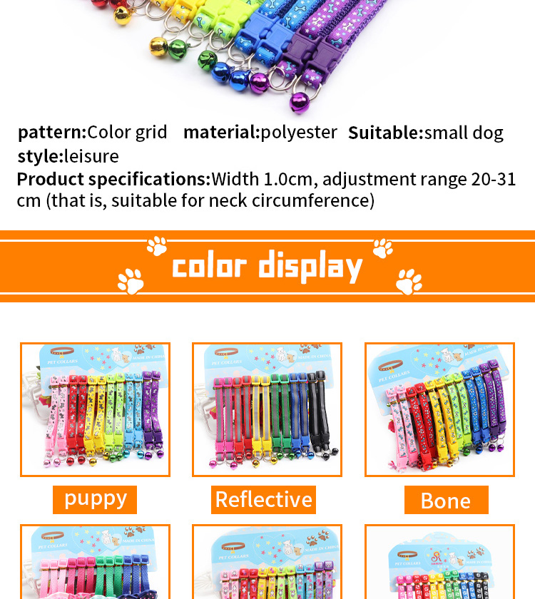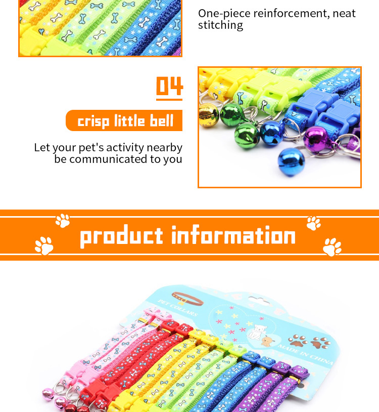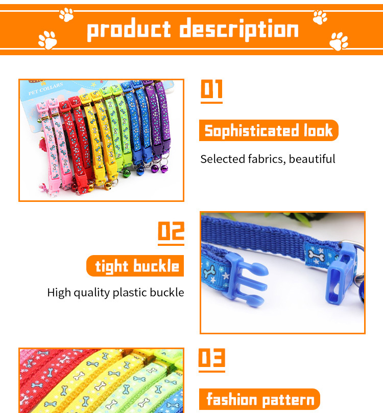 This adjustable cartoon printed cat collar with bell is made of high-quality soft nylon webbing, featuring cute cartoon patterns that are stylish and eye-catching. The built-in crisp bell helps you track your cat's location easily, while the adjustable design fits most kittens and adult cats comfortably. The quick release buckle ensures secure fastening and easy operation, and it's available in multiple vibrant colors to match different styles. Perfect for daily wear, outdoor activities and photo shoots. Support custom size, pattern, logo and wholesale orders.