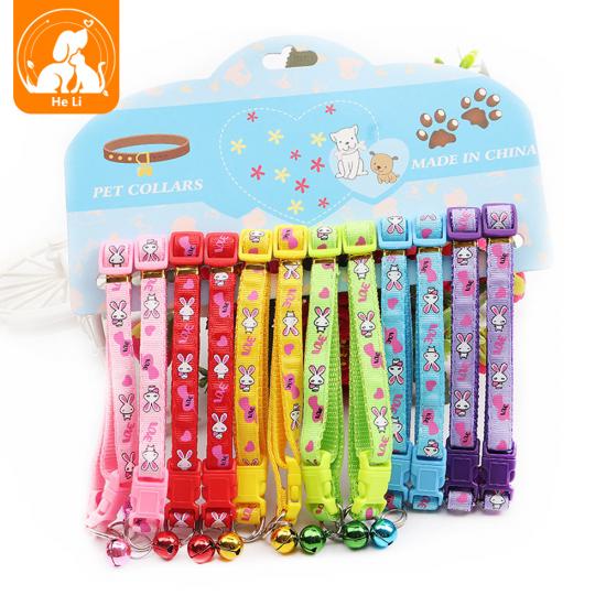 /Adjustable Cartoon Printed Cat Collar with Bell, Multi-Color Nylon Pet Collar for Kittens & Cats