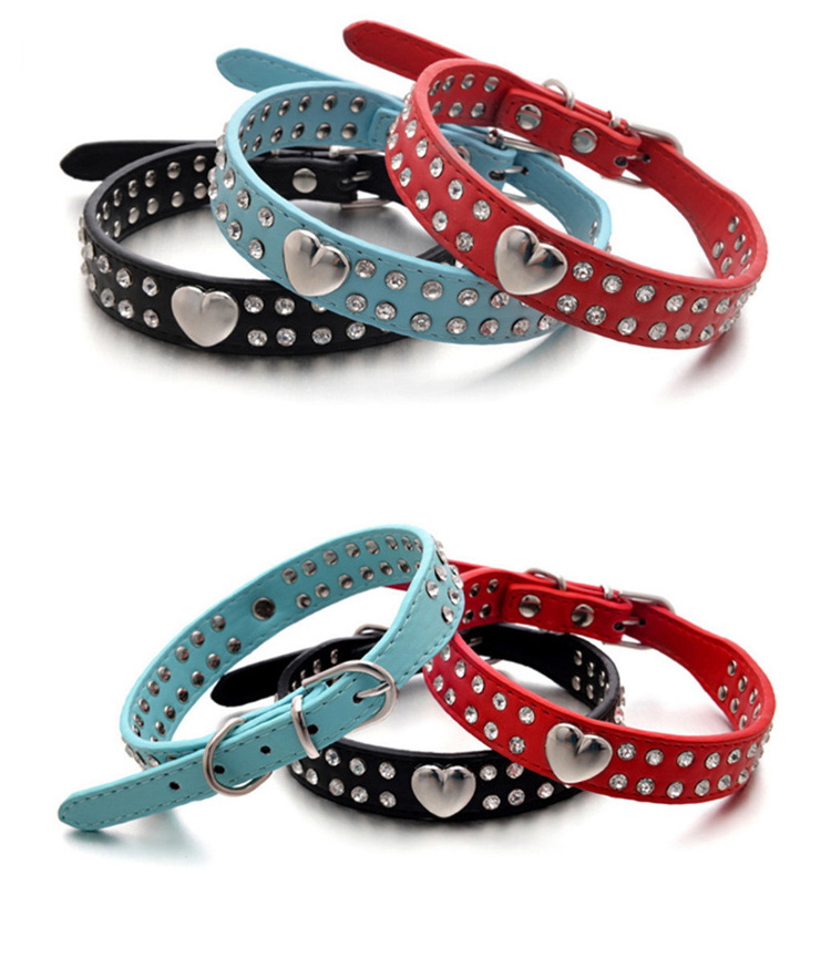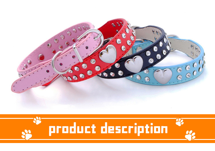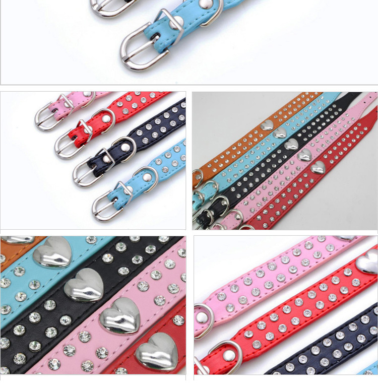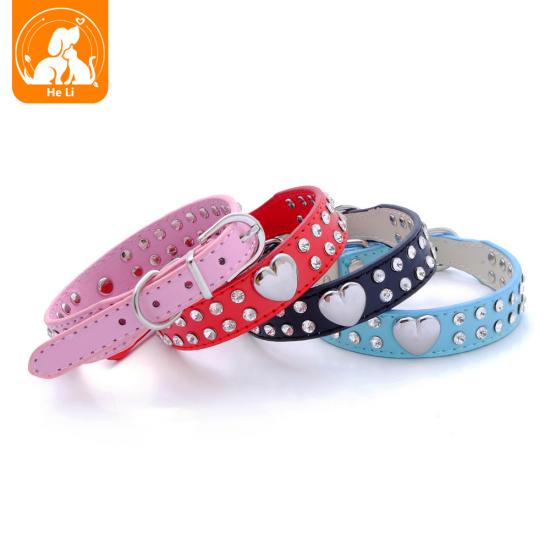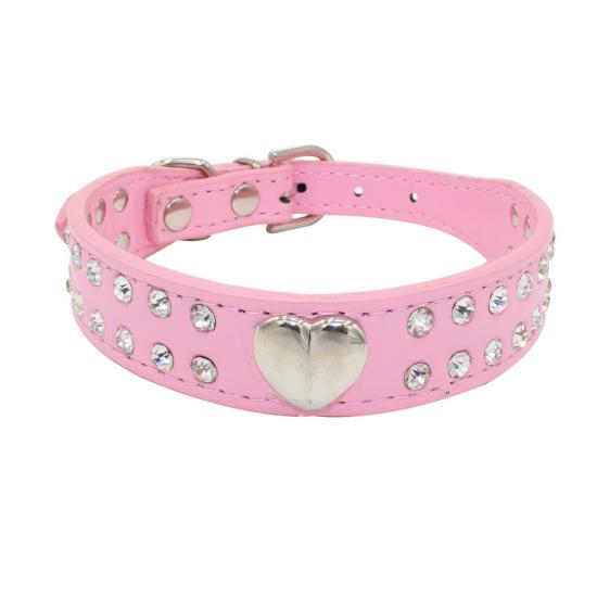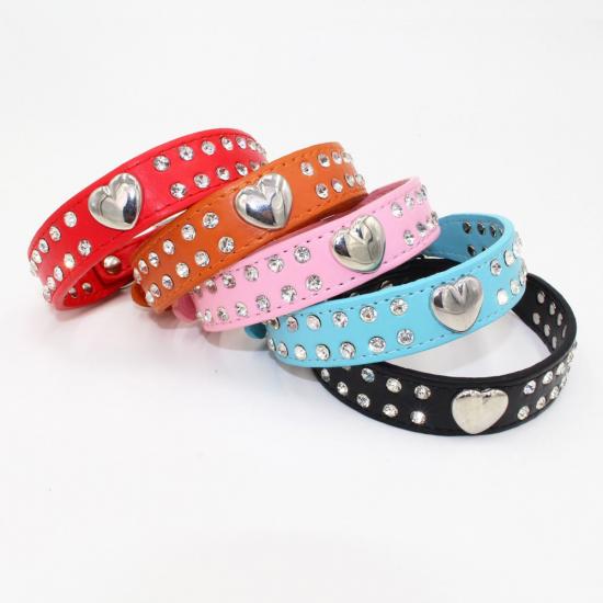 Adjustable Heart Studded Faux Leather Dog Collar, Multi-Color Cute Pet Collar for Small Medium Dogs