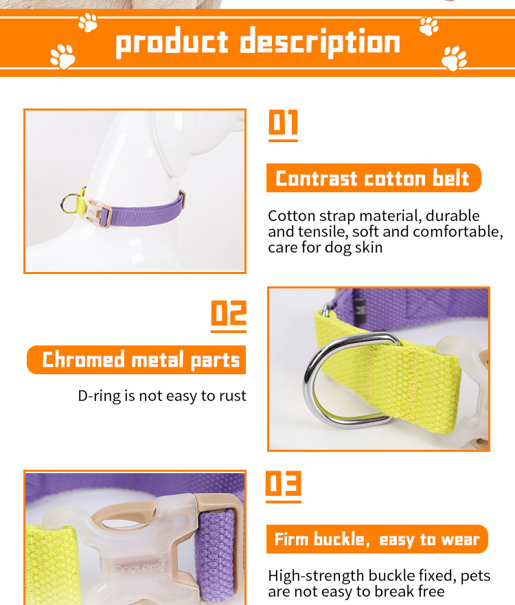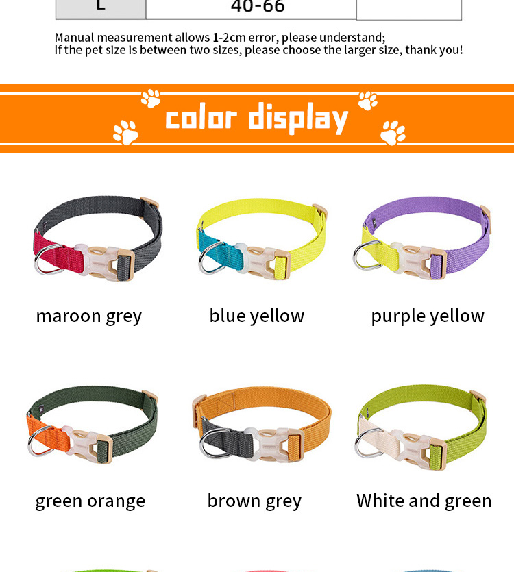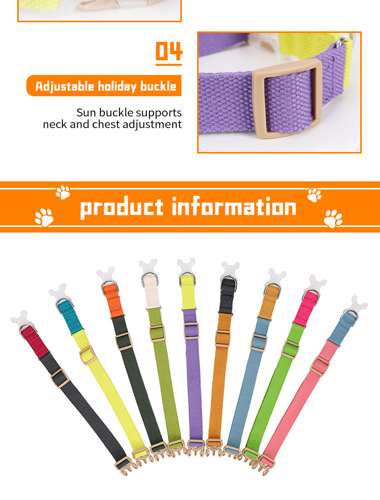 This adjustable reflective dog collar is made of high-quality soft nylon webbing, featuring a high-visibility reflective strip to ensure maximum safety during night walks, reducing accident risks significantly. The heavy-duty quick release buckle ensures secure fastening and one-hand easy operation, making it convenient for daily wear. The fully adjustable design fits most cats, small and medium dogs comfortably, and it's available in multiple vibrant colors to match different styles. The reinforced metal D-ring provides a reliable attachment point for leashes and ID tags. Support custom size, color, logo and wholesale orders.