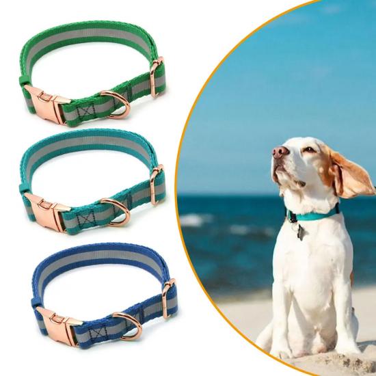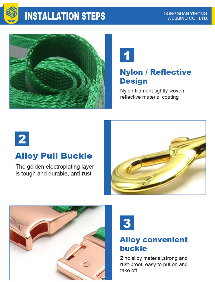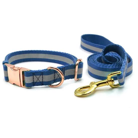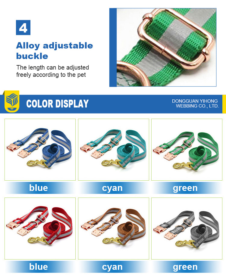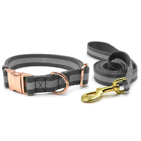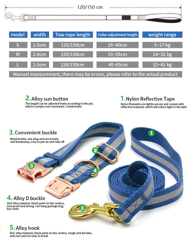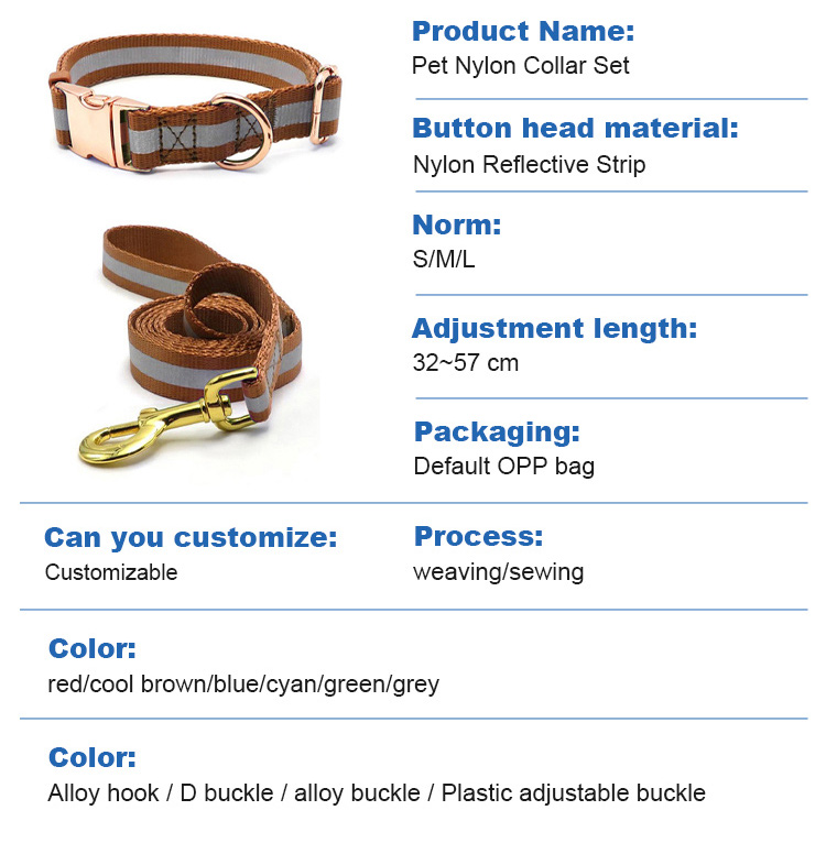This custom engraved dog collar and leash set is made of high-quality wear-resistant nylon webbing, with a stylish rose gold metal buckle for a premium, elegant look. The collar comes with a detachable bone-shaped ID tag, which supports custom engraving of your pet’s name and your contact info, to prevent your dog from getting lost. The adjustable design fits small, medium and large dogs comfortably without chafing, while the matching leash features a heavy-duty rust-proof gold clasp for secure attachment. Perfect for daily walking, outdoor activities and as a thoughtful gift for pet owners. Support custom engraving, color, logo and wholesale orders.