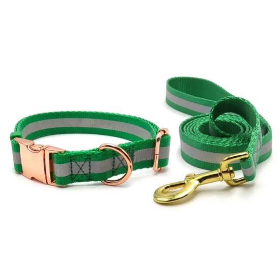 /Custom Engraved Dog Collar and Leash Set, Green Nylon Pet Collar with Rose Gold Buckle & Bone ID Tag for All Dog Breeds