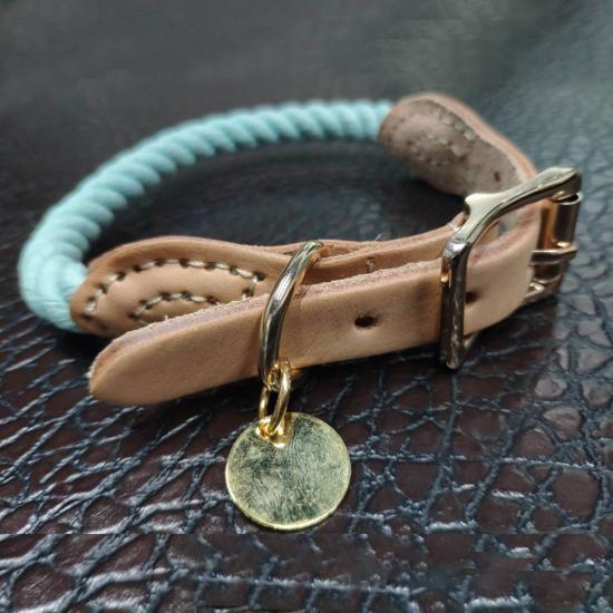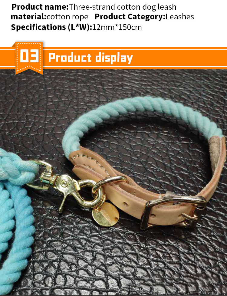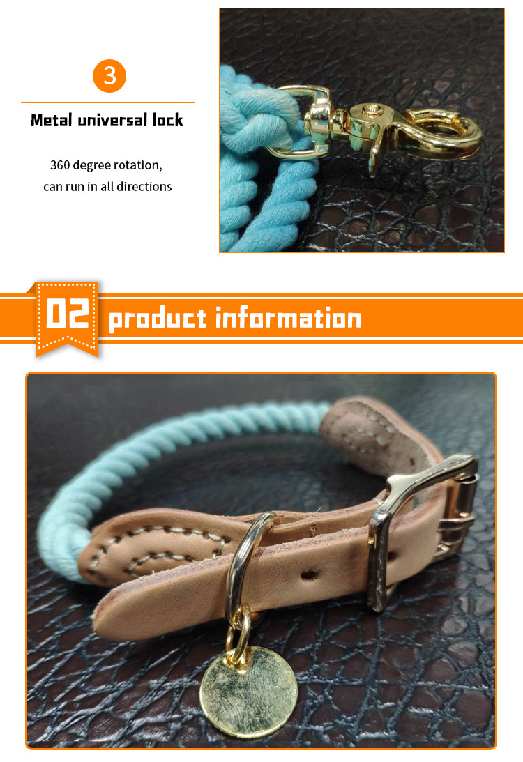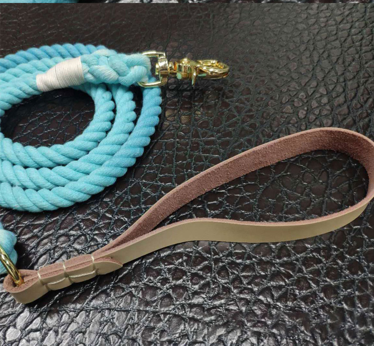This genuine leather handle braided round rope dog leash is made of high-tensile, wear-resistant nylon rope, paired with a premium genuine leather handle for a comfortable, durable grip. The tight braided construction resists fraying and breaking, while the solid brass swivel clasp prevents tangling and ensures a secure attachment to your dog's collar or harness. The vintage style design is stylish and durable, perfect for medium and large dogs, especially those with strong pulling habits. Ideal for daily walking, training, hiking and outdoor activities. Support custom size, color, logo and wholesale orders.