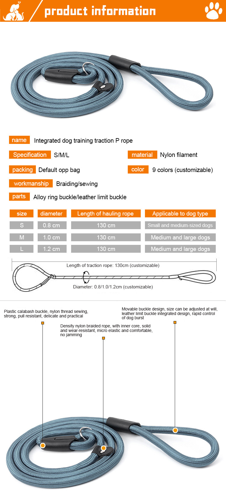 This multi-color soft rubber flat dog leash is made of high-tensile, waterproof soft rubber material, featuring a flat, durable design that resists fraying, dirt and water, perfect for outdoor and rainy-day walks. The soft padded handle ensures a comfortable, non-slip grip, reducing hand fatigue during long walks. The heavy-duty swivel metal clasp prevents tangling and ensures a secure attachment to your dog's collar or harness, ideal for medium and large dogs. Available in multiple classic color options, suitable for daily walking, training and all outdoor activities. Support custom size, color, logo and wholesale orders.