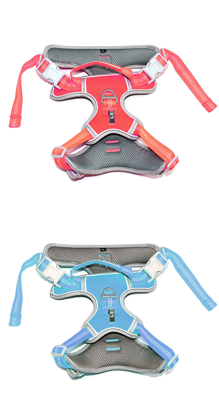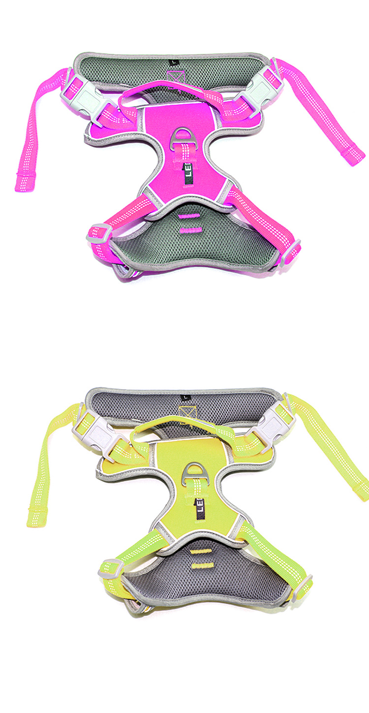 This breathable mesh dog harness and leash set is perfect for small dogs and teacup breeds. Made of lightweight, air-mesh fabric, it keeps your pet cool and comfortable during daily walks. The step-in design makes it easy to put on and take off, while reflective strips ensure visibility and safety at night. Available in pink, green and purple, this colorful set adds a stylish touch to your pet’s look. The matching padded-handle leash offers a comfortable grip. Support custom logo and wholesale orders.
