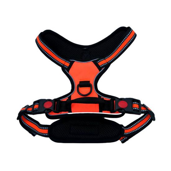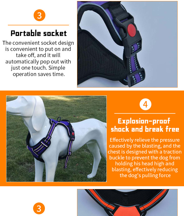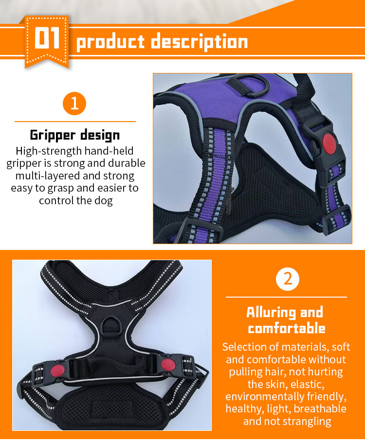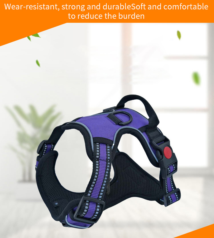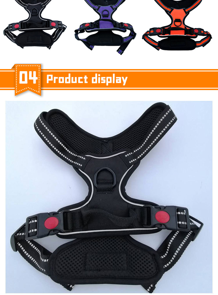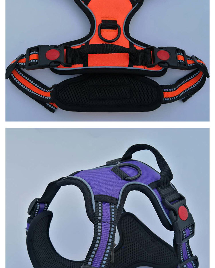 This no pull tactical dog harness is made of high-tensile, wear-resistant 1000D nylon fabric, featuring a sturdy military-style design with a top handle for instant control, perfect for medium and large working dogs. The ergonomic no-pull structure distributes pressure evenly across the dog's chest and back, effectively preventing choking and strain. Equipped with multiple heavy-duty quick-release buckles, adjustable straps and a reinforced metal D-ring, it ensures a secure, custom fit and reliable attachment for leashes and training gear. Ideal for daily walking, training, hiking and other outdoor activities. Support custom size, color, logo and wholesale orders.
