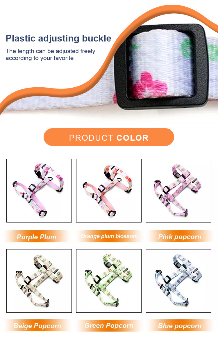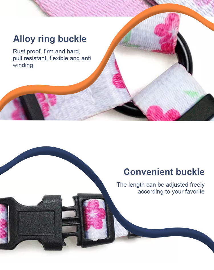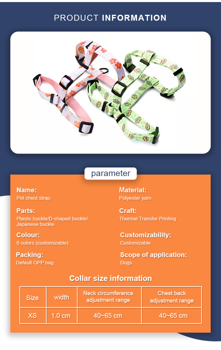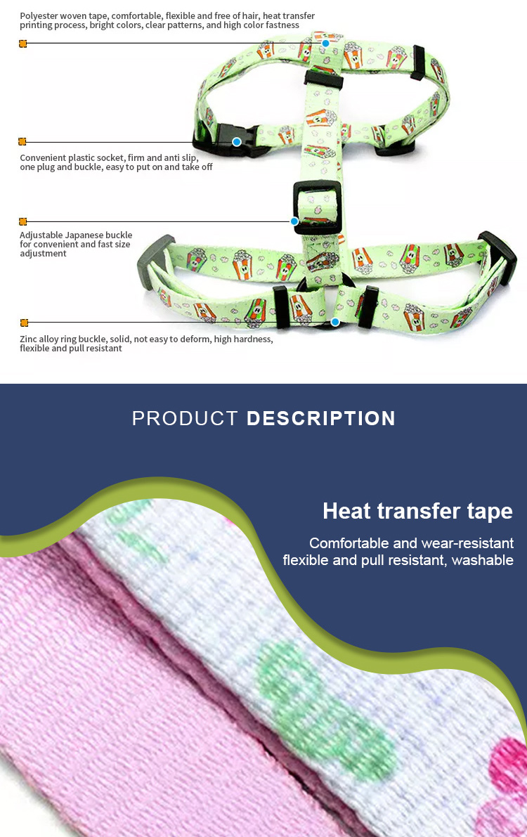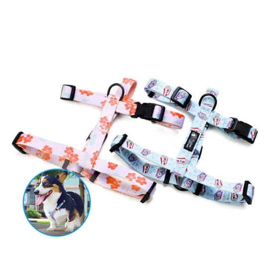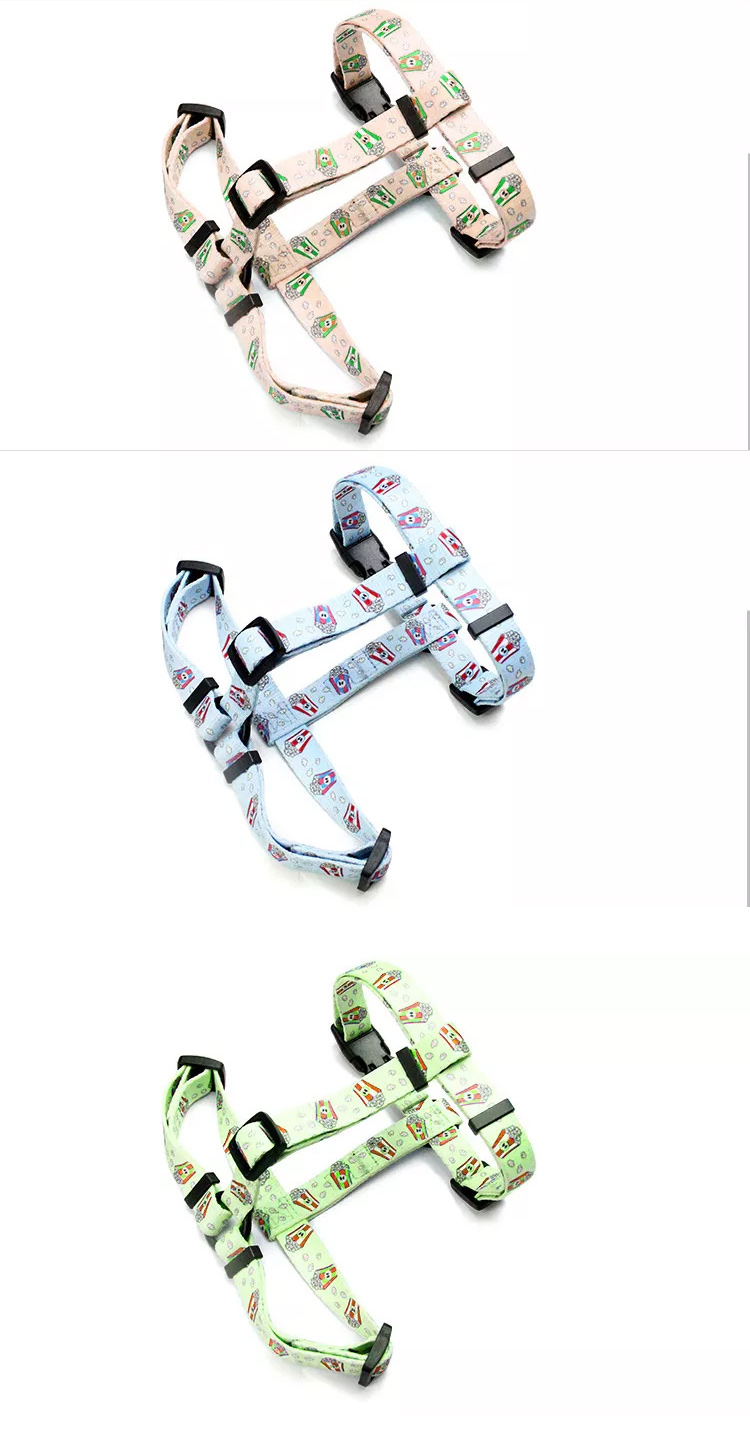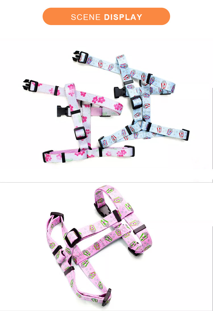 This printed cartoon dog harness is made of high-quality, wear-resistant nylon webbing, featuring cute and colorful cartoon patterns that are stylish and eye-catching. The ergonomic no-pull design distributes pressure evenly across the dog's chest and back, effectively preventing choking and strain, perfect for small, medium and large dogs. Equipped with heavy-duty quick-release buckles and adjustable straps, it ensures a secure, custom fit for different body types. The reinforced metal D-ring provides a reliable attachment point for leashes, ideal for daily walking, training and outdoor activities. Support custom size, pattern, logo and wholesale orders.