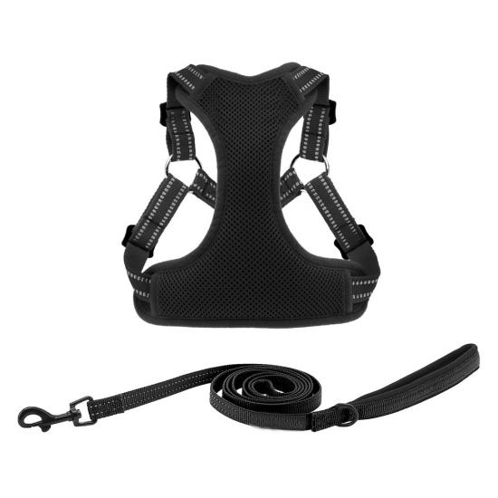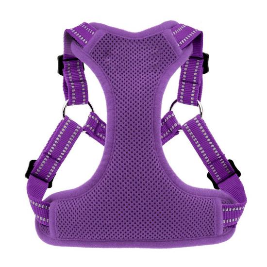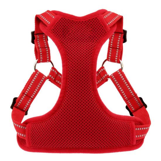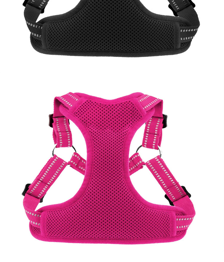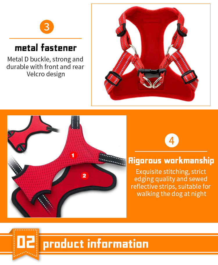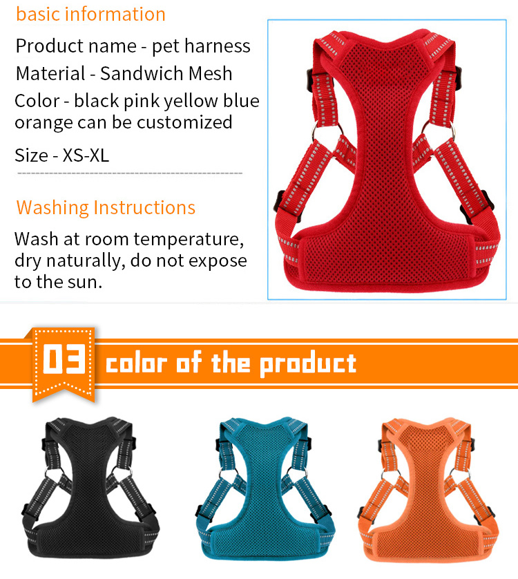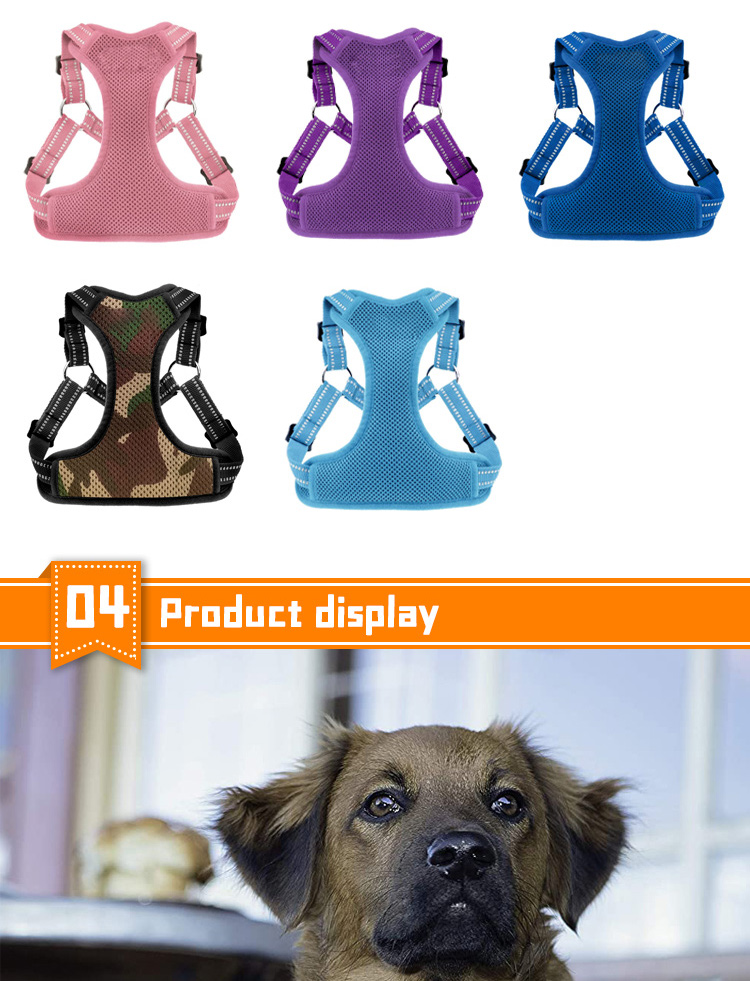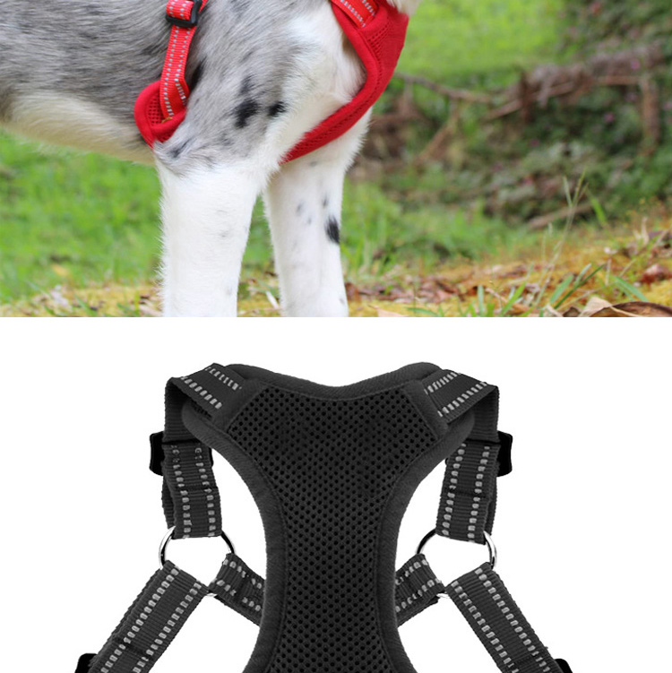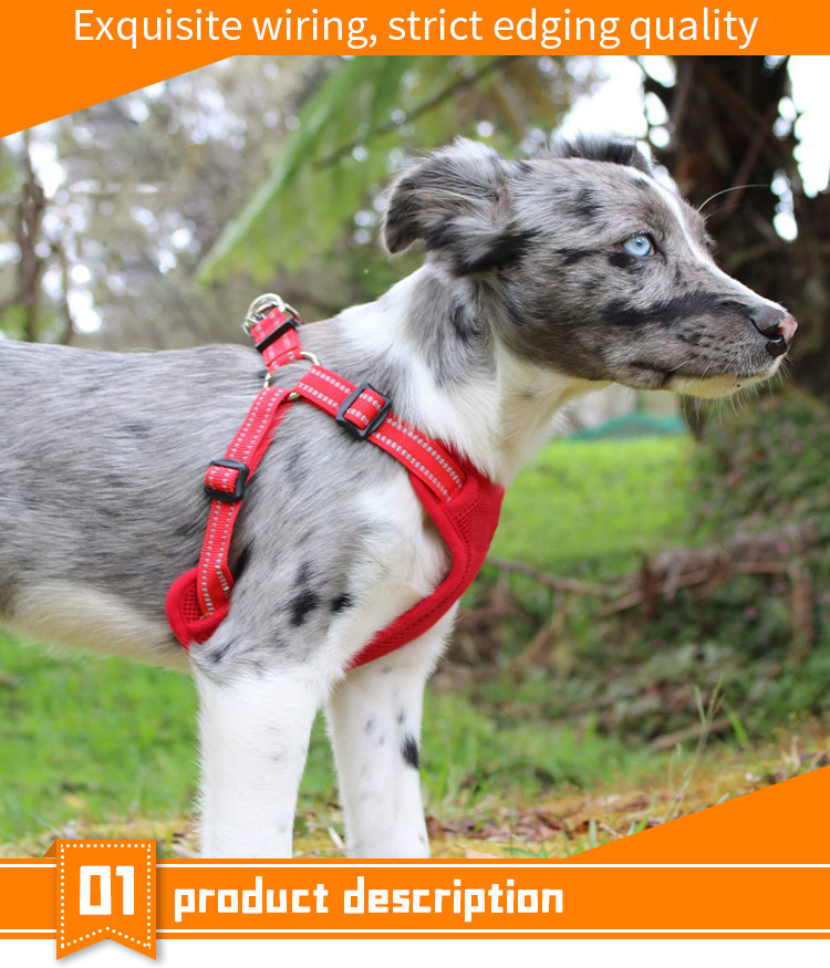 This quick-release no pull dog harness is made of high-tensile, wear-resistant nylon fabric with soft padded lining, featuring a user-friendly quick-release buckle system for effortless on and off. The ergonomic no-pull design distributes pressure evenly across the dog's chest and back, effectively preventing choking and strain, perfect for medium and large dogs. Equipped with multiple adjustable straps and a reinforced metal D-ring, it ensures a secure, custom fit and reliable attachment for leashes. Ideal for daily walking, training and outdoor activities. Support custom size, color, logo and wholesale orders.