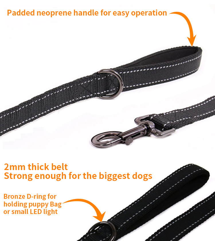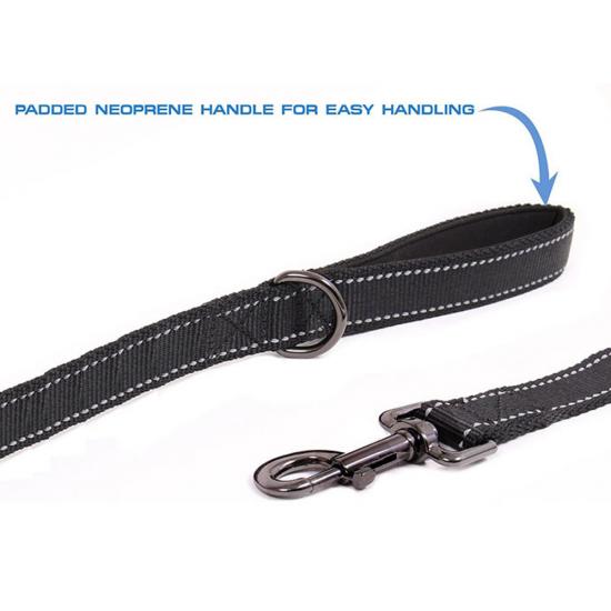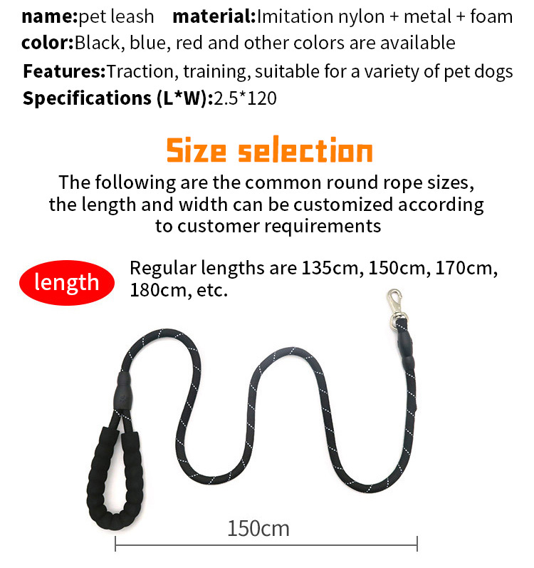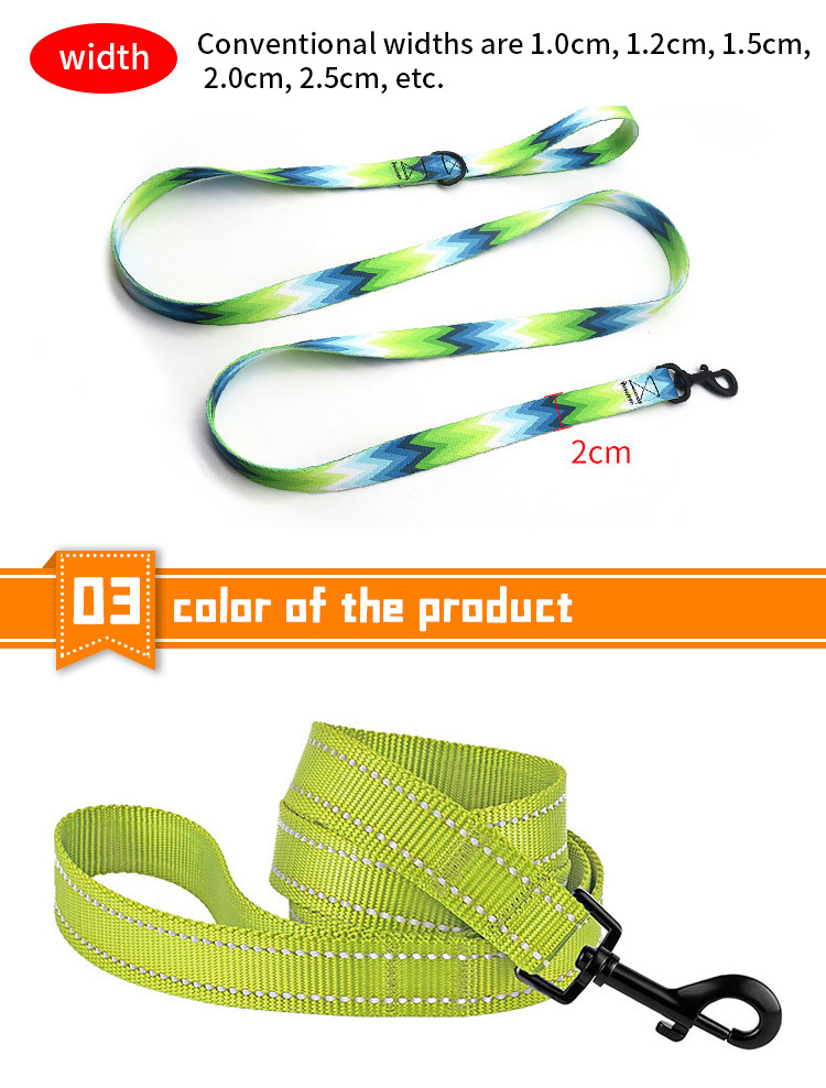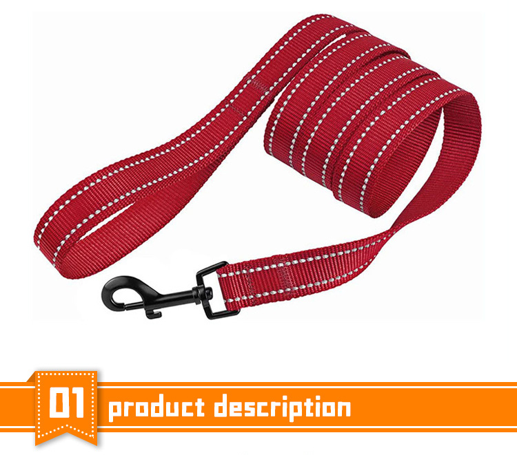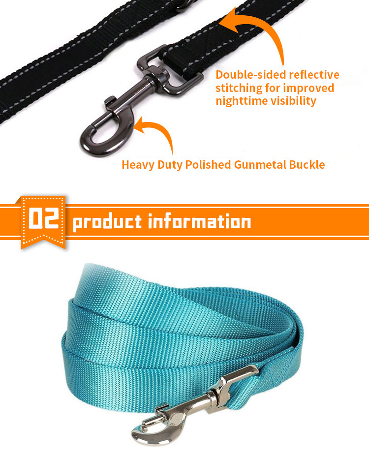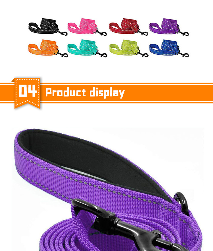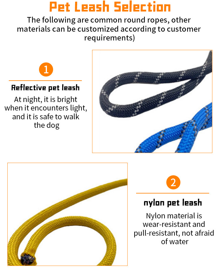 This reflective braided dog leash is made of high-tensile, wear-resistant nylon webbing, featuring a tight braided construction that resists fraying and breaking. The high-intensity reflective threads ensure maximum visibility and safety during night walks, making it perfect for early morning or late evening outdoor activities. Available in multiple vibrant color options to suit different styles. The heavy-duty swivel metal clasp prevents tangling and ensures a secure attachment to your dog's collar or harness. Ideal for daily walking, training and hiking, suitable for small, medium and large dogs. Support custom size, color, logo and wholesale orders.