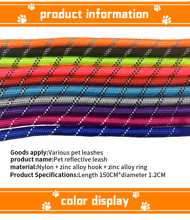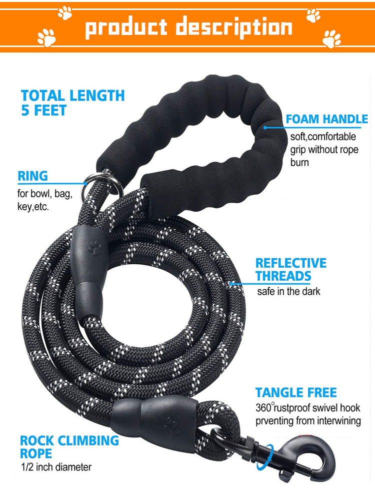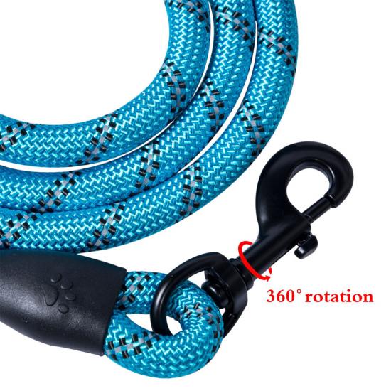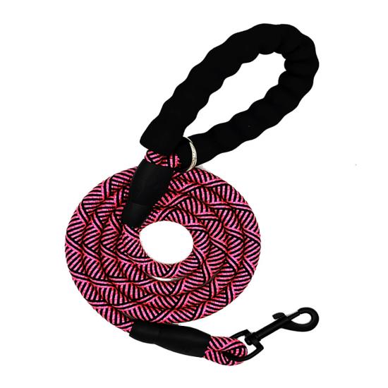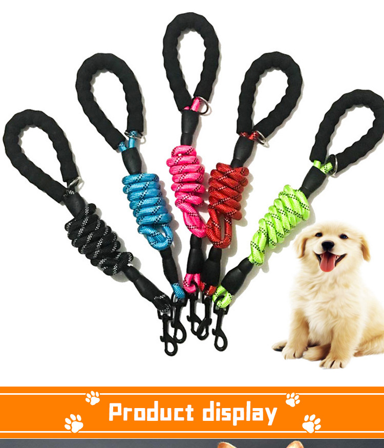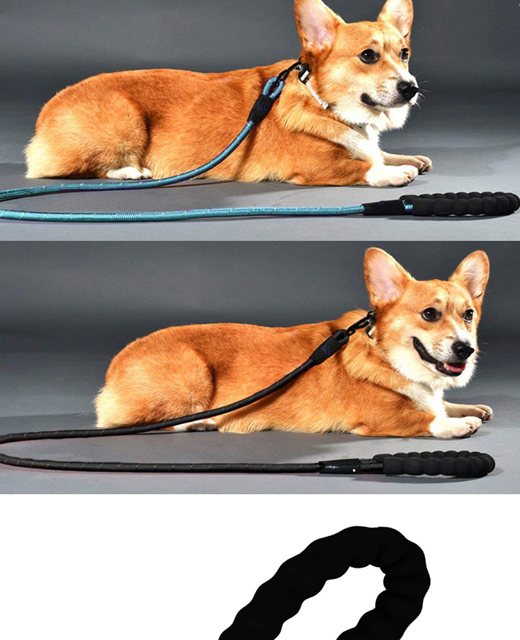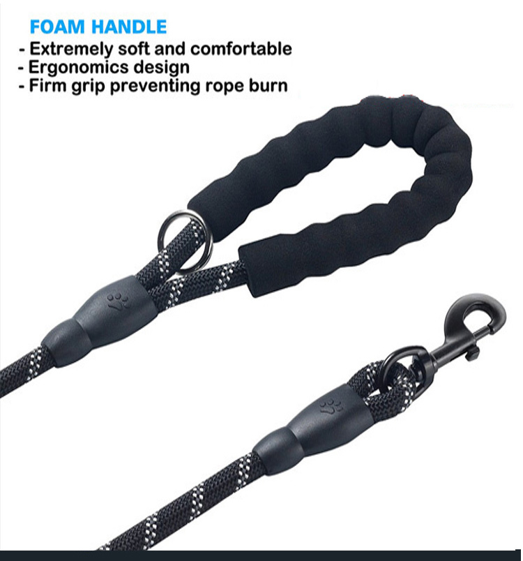 This reflective padded handle dog leash is made of high-tensile, wear-resistant nylon webbing, featuring high-intensity reflective threads that ensure maximum visibility and safety during night walks. The soft foam padded handle ensures a comfortable, non-slip grip, reducing hand fatigue during long walks. The heavy-duty swivel metal clasp prevents tangling and ensures a secure attachment to your dog's collar or harness, perfect for medium and large dogs, especially those with strong pulling habits. Available in multiple vibrant color options, ideal for daily walking, training, hiking and outdoor activities. Support custom size, color, logo and wholesale orders.