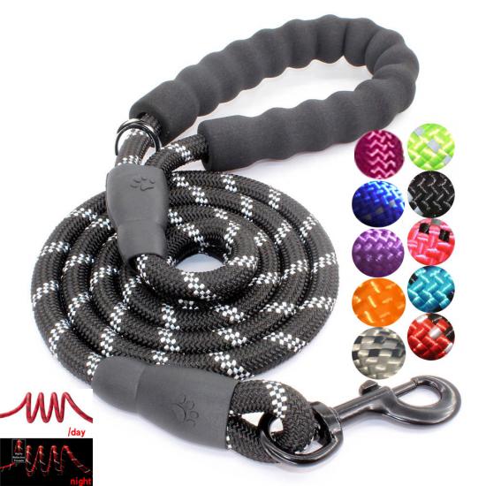 Reflective Padded Handle Dog Leash, Heavy Duty Nylon Pet Walking Lead for Medium Large Dogs