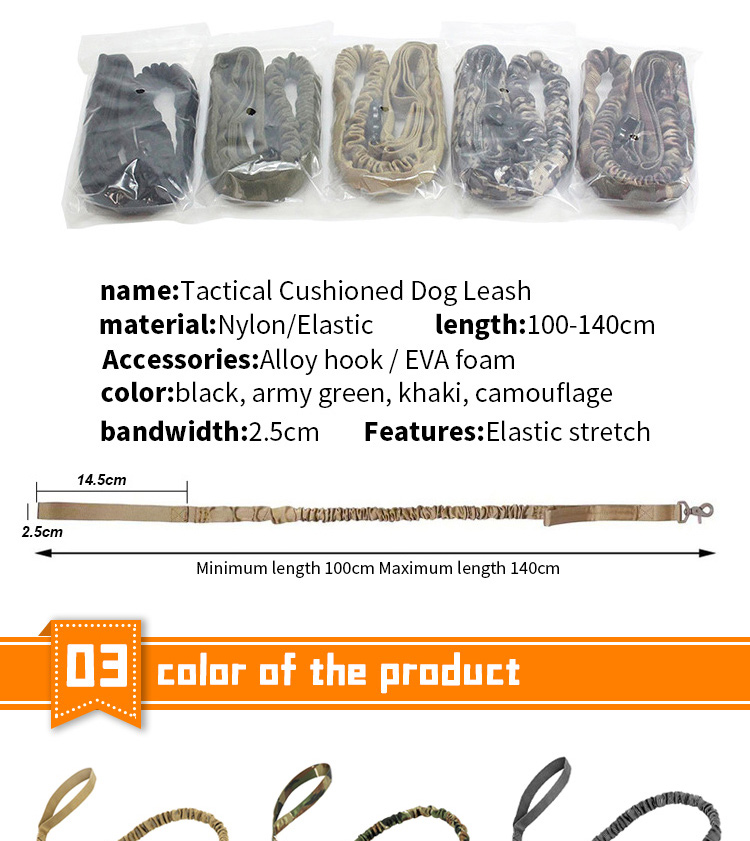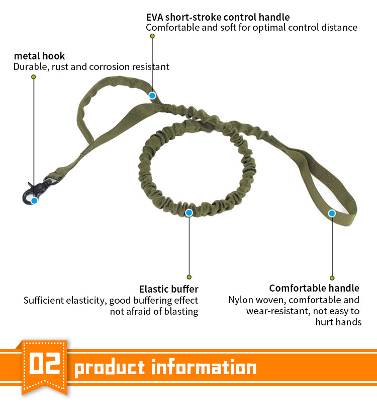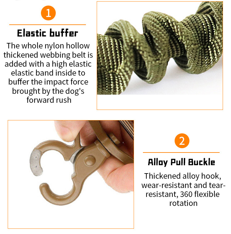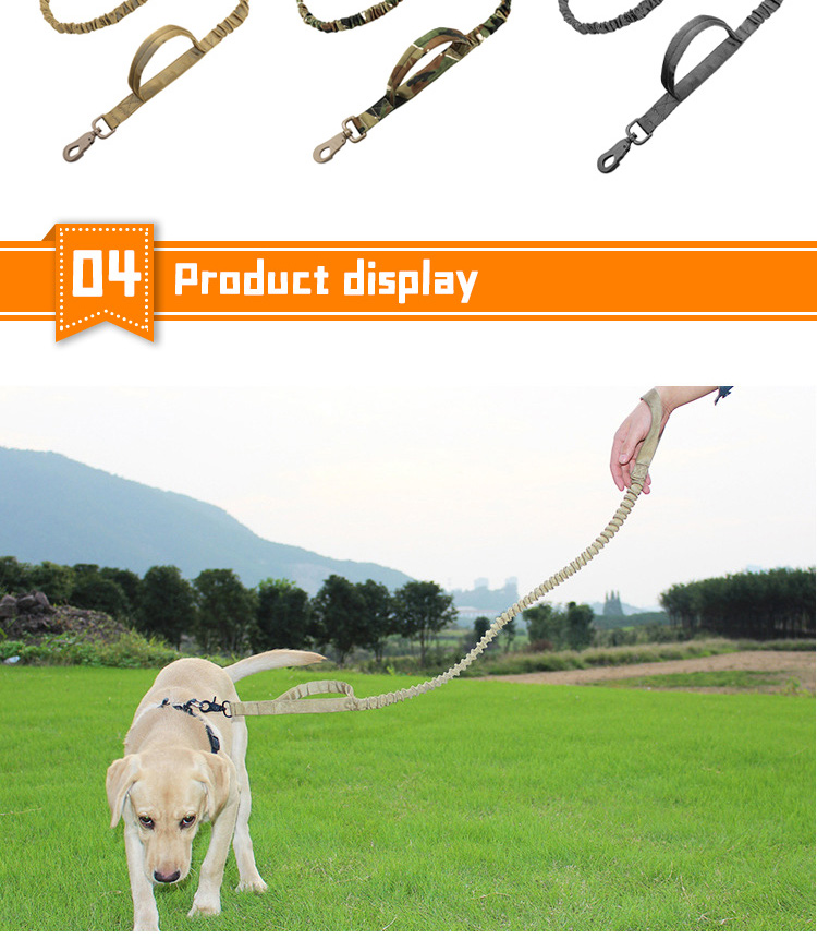 This shock absorbing spring dog leash is made of high-tensile, wear-resistant nylon webbing, featuring a built-in elastic spring buffer to absorb sudden pulling impact, effectively reducing strain on both you and your pet. The soft padded handle ensures a comfortable, non-slip grip, reducing hand fatigue during long walks. The heavy-duty swivel metal clasp prevents tangling and ensures a secure attachment to your dog's collar or harness, perfect for medium and large dogs, especially those with strong pulling habits. Available in multiple classic color options, ideal for daily walking, training and outdoor activities. Support custom size, color, logo and wholesale orders.