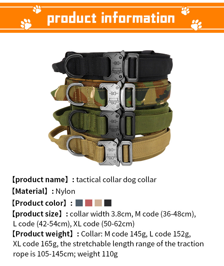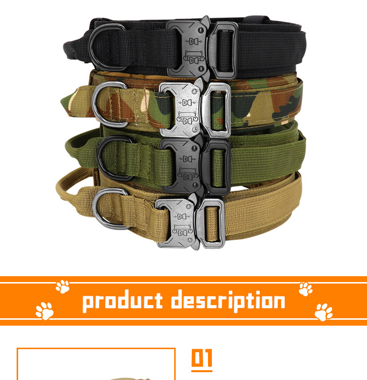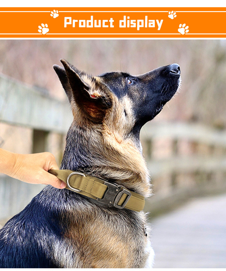 This tactical AirTag dog collar is specially designed for medium and large working dogs, with a built-in hidden AirTag holder to track your dog’s location in real time, preventing loss and ensuring safety. Made of high-tensile, wear-resistant military-grade nylon webbing, it features a sturdy control handle for instant, secure handling during training, walking and outdoor activities. The adjustable design with a heavy-duty quick-release buckle ensures a perfect, comfortable fit, while the reinforced metal D-ring provides a reliable attachment point for leashes. The set also includes a detachable control strap for extra safety. Ideal for dog training, K9 work and daily walking. Support custom size, color, logo and wholesale orders.