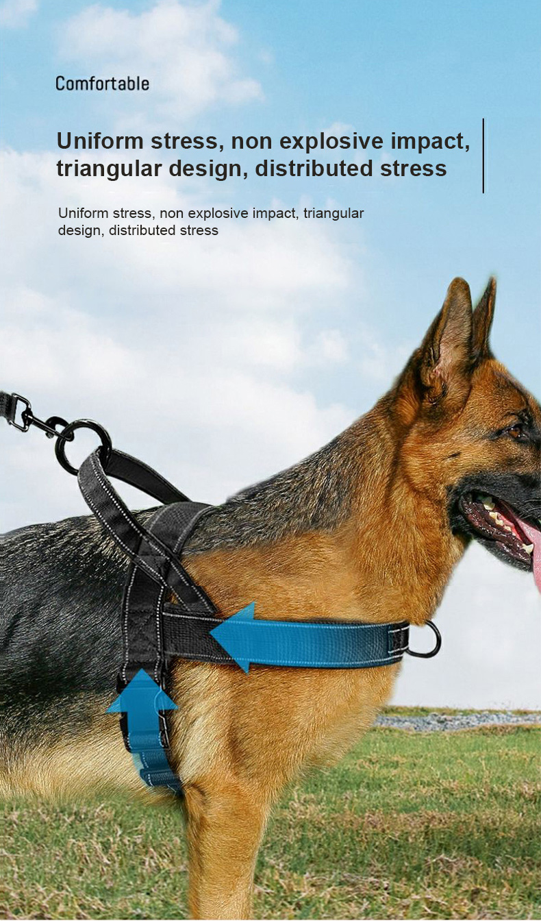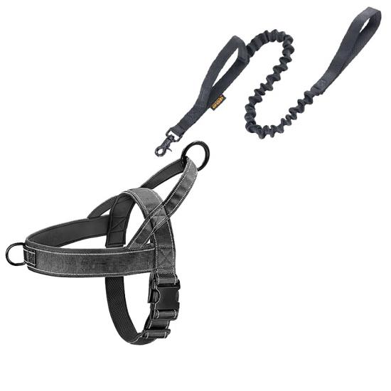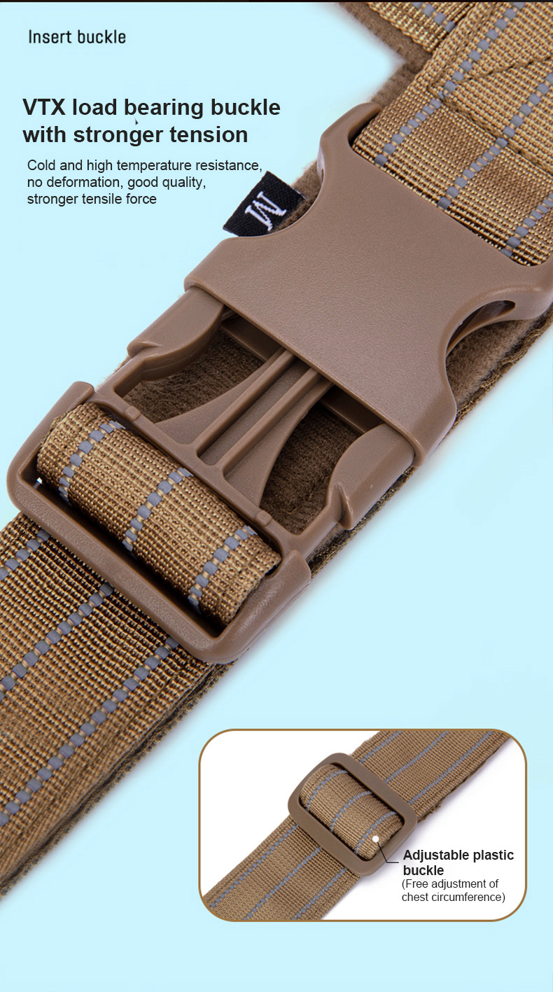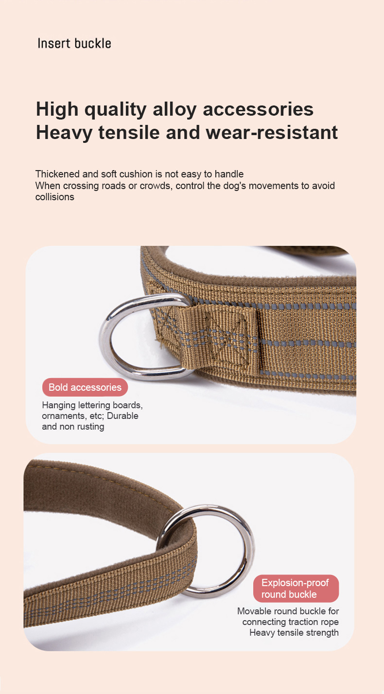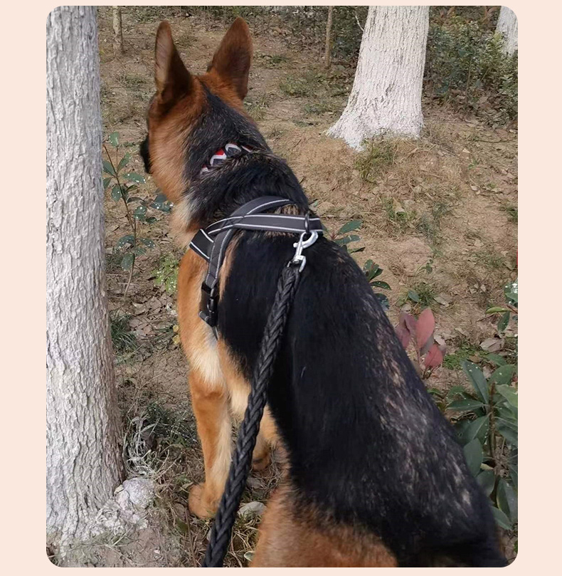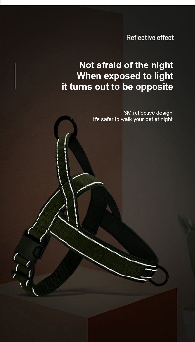 This tactical dog harness and leash set is made of high-strength nylon webbing, designed for military-style durability and control. The adjustable harness features sturdy metal D-rings for secure leash attachment, while the padded handle on the matching leash ensures comfortable grip during training or outdoor activities. The military green color offers a rugged, functional look, ideal for working dogs, training sessions and outdoor adventures. Support custom logo and wholesale orders.